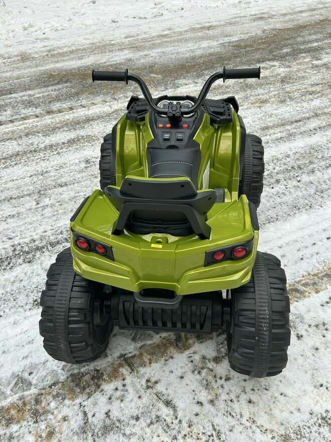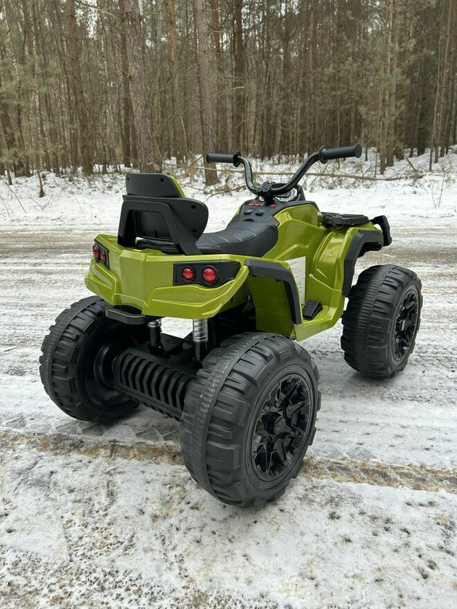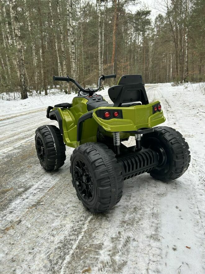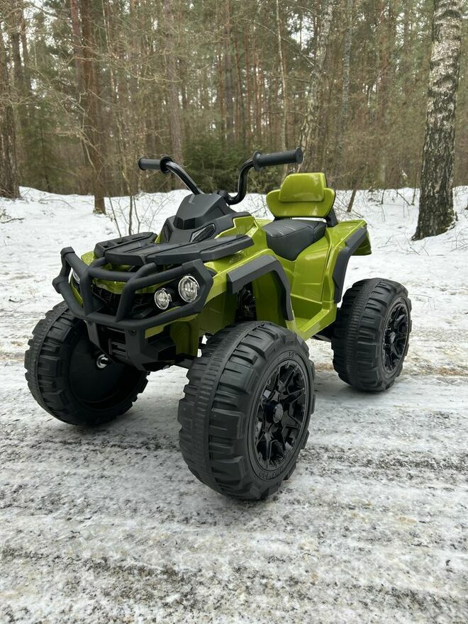 Duży, masywny quad elektryczny dla dzieci z dużymi kołami i wysokim prześwitem. Model terenowy, który świetnie wygląda i dobrze radzi sobie na trawie oraz nierównej nawierzchni. Stabilna konstrukcja i szeroka podstawa sprawiają, że jazda jest pewna i komfortowa.Napęd 2x45W oraz akumulator 12V 7Ah zapewniają płynną jazdę. Quad posiada wolny start, dzięki czemu rusza łagodnie, bez szarpnięć.